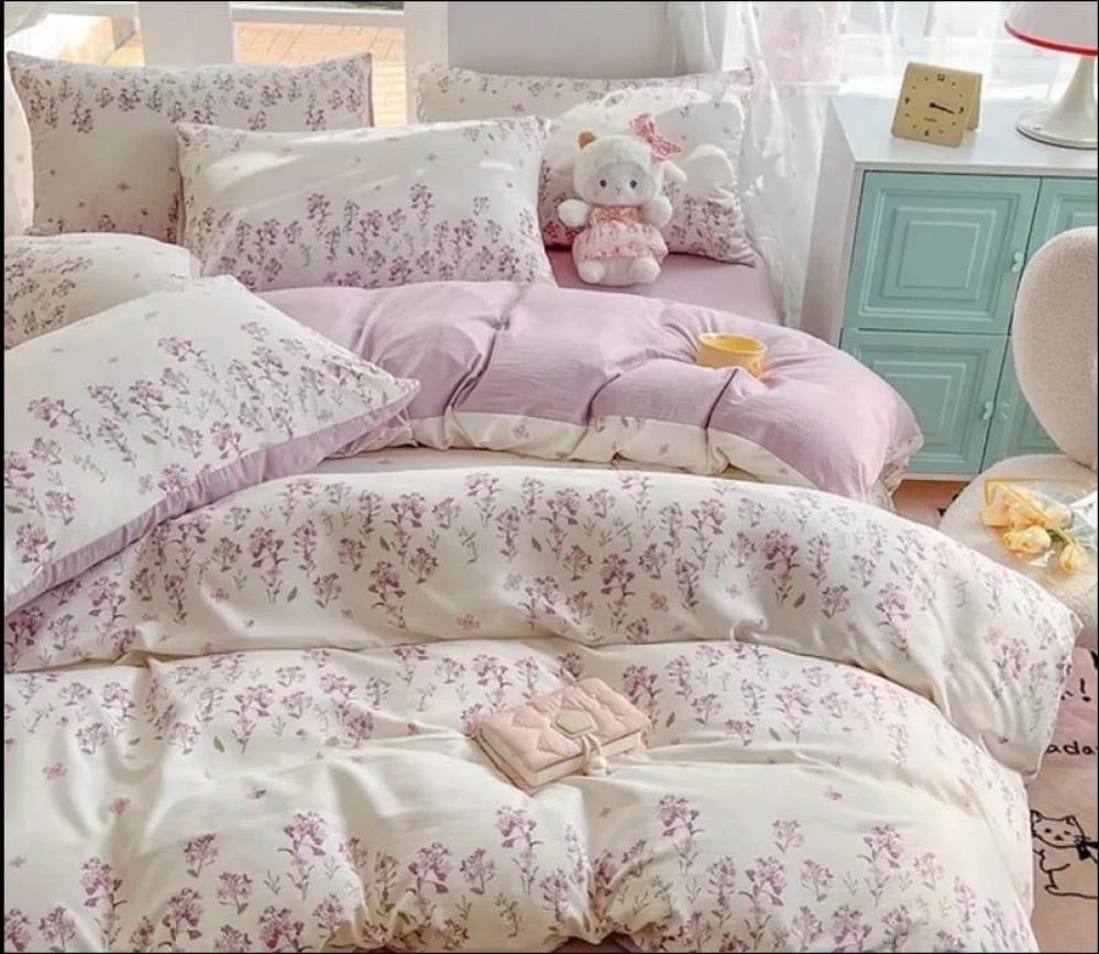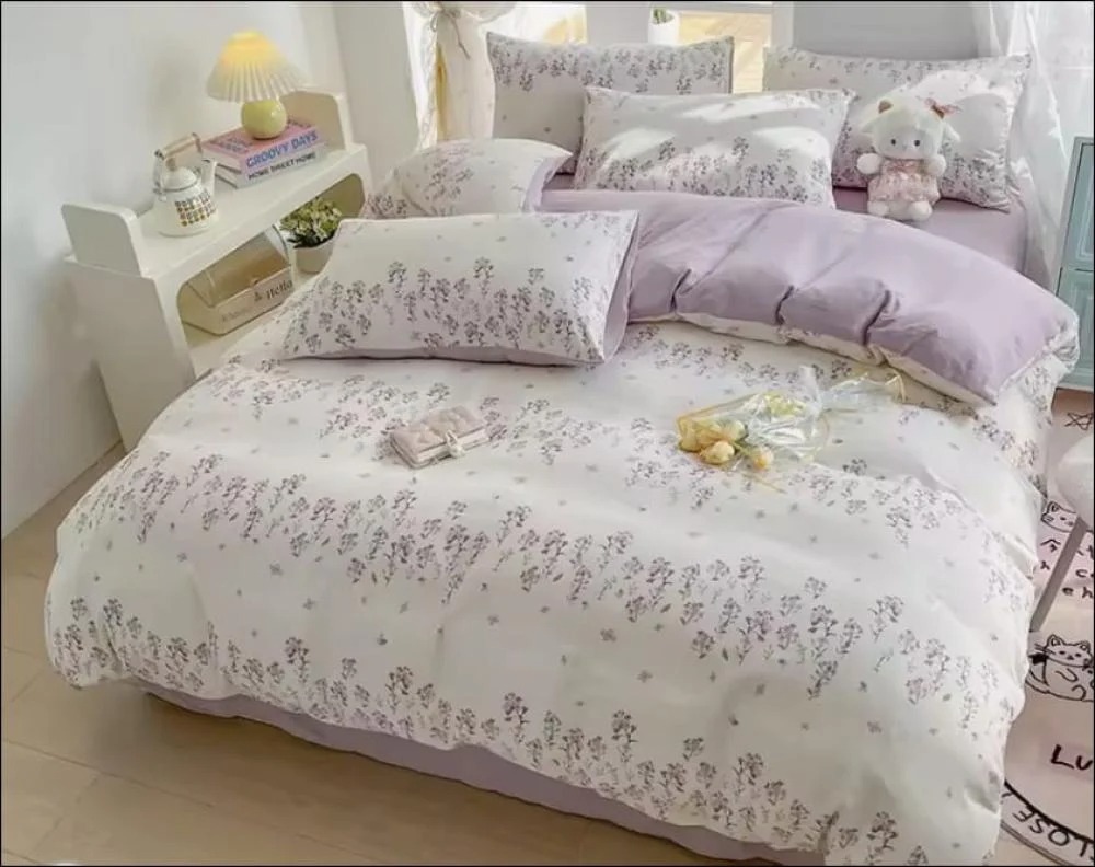 عدد القطع: 4 قطع (تلبيسة لحاف ومفرش سرير و قطعتين غطاء مخدة).