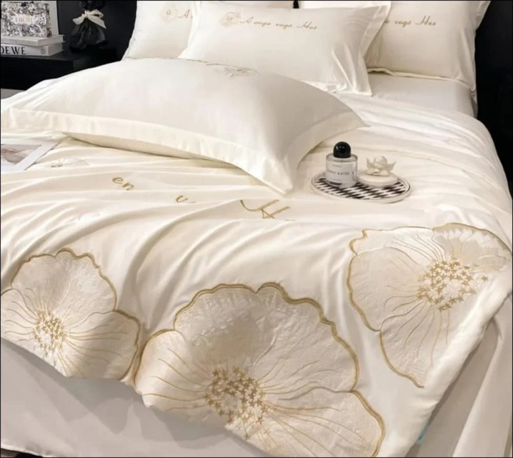 عدد القطع: 4 قطع (مفرش، تلبيسة لحاف، قطعتين غطاء مخدة).