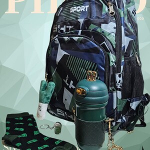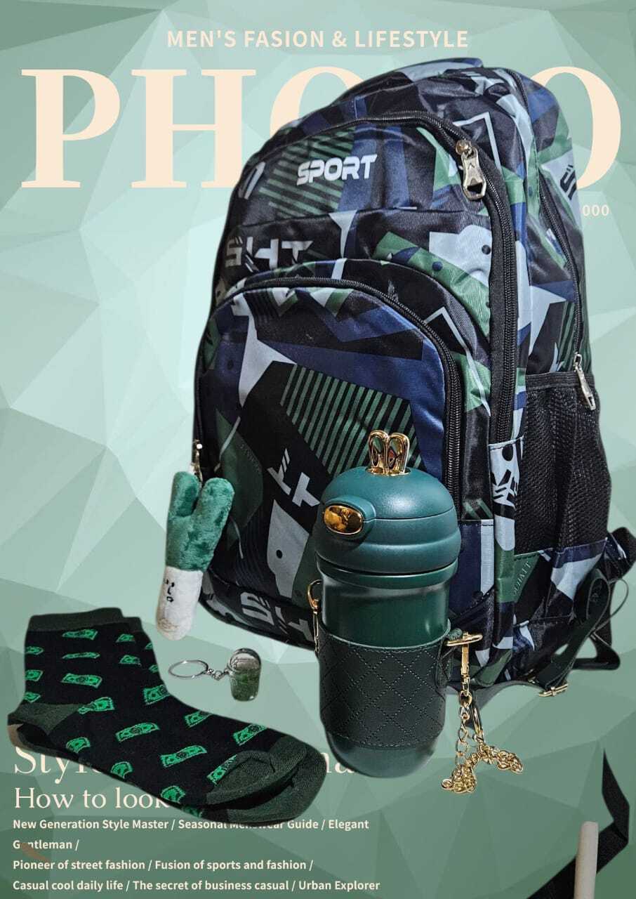 شنطة مدرسية صُممت للرجل العصري الذي يعيش حياته بحماس ويعشق التفرد في كل لحظة توليفة متكاملة تجمع بين الوظيفة والستايل، لتكون رفيقك المثالي في كل مغامرة يومية أو مناسبة. مواصفات شنطة مدرسية اسم المنتج : شنطة مدرسية الحقيبة: ظهر رياضي مموه، شعار “SPORT”، مزودة بدمية صغيرة الترموس: أخضر داكن بغطاء ذهبي، مزود بسلسلة معدنية للحمل الجوارب: بطبعة الدولار، تصميم جريء وكاجوال الإكسسوارات: ميدالية زجاجة صغيرة لأناقة إضافية القسم: بكجات متنوعة مميزات شنطة مدرسية شنطة مدرسية تتميز بتصميم هندسي مموه ولمسات شعار “SPORT” تعكس روح النشاط. ترموس فاخر بلون أخضر داكن مع غطاء ذهبي لمزيد من الأناقة والعملية. شنطة مدرسية مع جوارب بطبعة الدولار تعبر عن شخصية واثقة وجريئة. إكسسوارات مثل دمية صغيرة وميدالية زجاجة تضيف لمسة شخصية مميزة. تصميم عملي مثالي للتنقل اليومي، العمل، والأنشطة الخارجية. خامات متينة تضمن راحة الاستخدام واستمرارية الأداء. عِش كل يوم بأناقة تليق بحماسك وروحك المغامرة,احصل عليه من متجر quintus